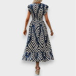 Αυτό το φόρεμα προσφέρει ανάλαφρη αίσθηση και στυλ στην καθημερινότητά σας. Με το παιχνιδιάρικο σχέδιό του, την κολακευτική εφαρμογή και την αέρινη εφαρμογή του, είναι ιδανικό για ζεστές μέρες και δροσερά βράδια. Είτε πρόκειται για μια βόλτα στην παραλία, μια εκδρομή στην πόλη ή ένα πάρτι στον κήπο - αυτό το φόρεμα σας δείχνει τα πάντα τέλεια.