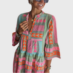 Δεν είναι απλώς ένα φόρεμα - είναι μια δήλωση! Με μια casual, αέρινη γραμμή και χειροποίητα γεωμετρικά σχέδια, το φόρεμα φέρνει χαρά και στυλ στην καθημερινότητά σας. Είναι απίστευτα άνετο και δείχνει φανταστικό - ιδανικό για μια καλοκαιρινή μέρα στην πόλη ή δίπλα στη λίμνη.