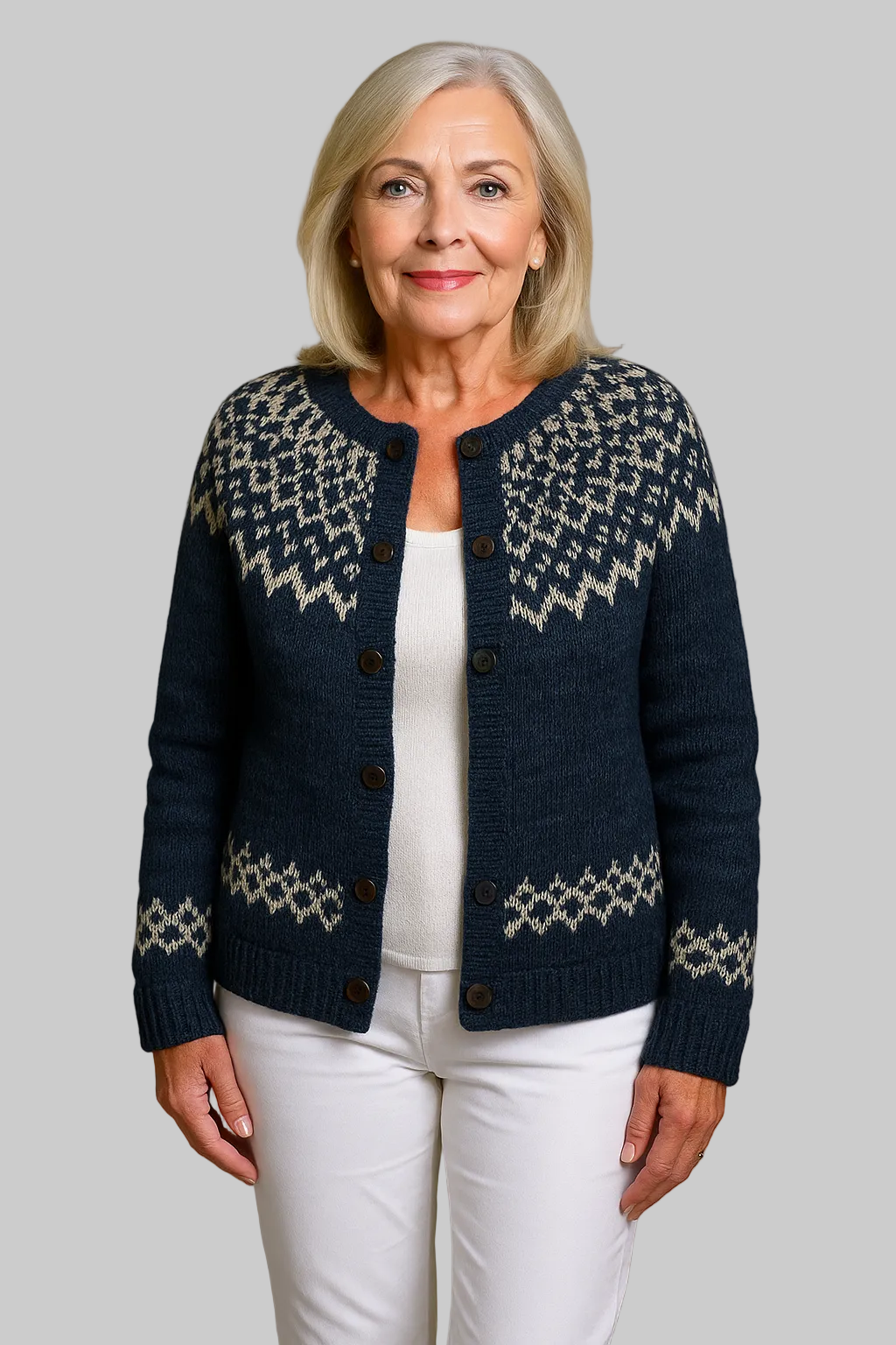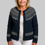 Αυτό το άνετο ζακετάκι συνδυάζει ζεστά, περίπλοκα σχέδια με απαλή, χαλαρή εφαρμογή. Το παραδοσιακό σχέδιο προσθέτει μια αίσθηση κληρονομιάς στην γκαρνταρόμπα σας, ενώ το μπροστινό μέρος με κουμπιά εξασφαλίζει εύκολη τοποθέτηση πάνω από casual ρούχα. Ιδανικό για κρύες μέρες ή ζεστά βράδια, αυτό το μπουφάν προσφέρει άνεση και στυλ σε ένα ευέλικτο κομμάτι.