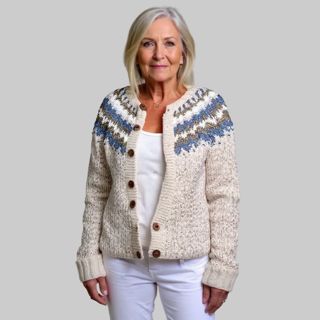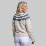 Αυτή η όμορφη vintage ισλανδική ζακέτα προσφέρει μια αίσθηση βόρειας γοητείας με την κρεμ βάση της και το περίπλοκο μπλε και γκρι γεωμετρικό σχέδιο. Το σχέδιο με κουμπιά και το απαλό, λεπτό ύφασμα εξασφαλίζουν ζεστασιά και άνεση, καθιστώντας την το τέλειο κομμάτι για layering κατά τους κρύους μήνες. Μια ζεστή και διαχρονική κάρτα για καθημερινή χρήση.