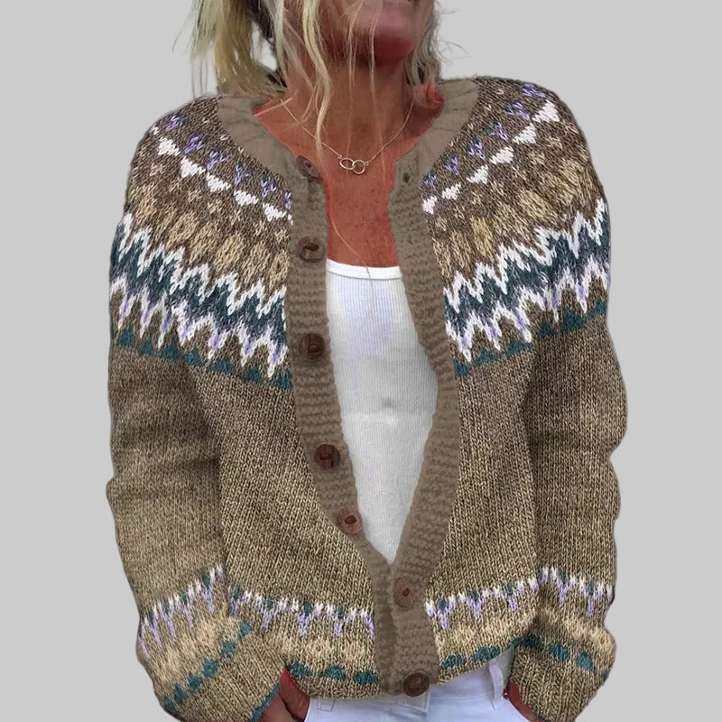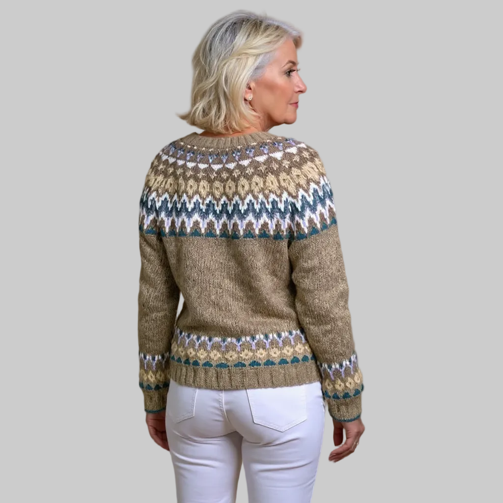 Αυτή η άνετη καμπίνα εμπνευσμένη από την Ισλανδία προσφέρει μια ζεστή, νοσταλγική γοητεία στην καμπίνα σας. Με ένα όμορφο, περίπλοκο σχέδιο στους ώμους και την μπροστινή αγκράφα, αυτό το μπουφάν συνδυάζει άνεση και στυλ. Ιδανικό για να το φορέσετε πάνω από casual ρούχα ή για ζεστασιά τα κρύα βράδια, αυτό το κομμάτι προσφέρει διαχρονική κομψότητα με μια νότα ρουστίκ γοητείας.