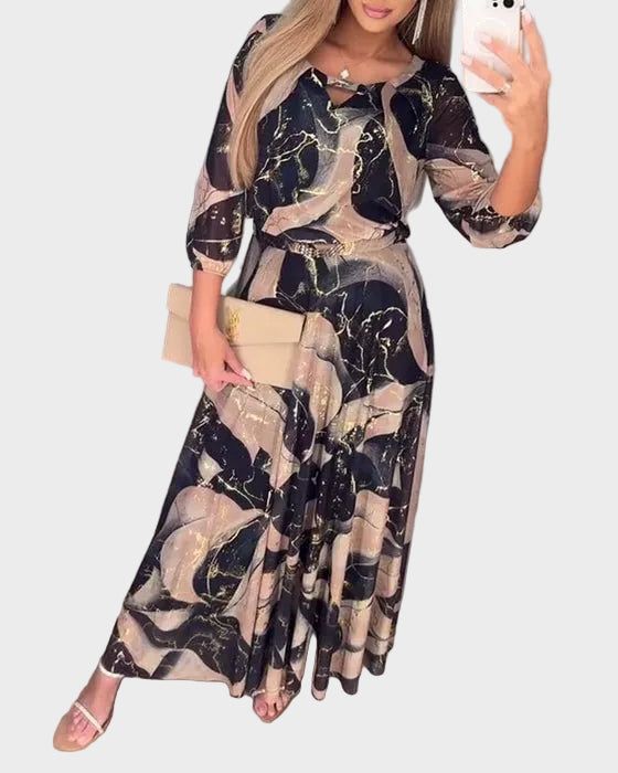 Αυτό το Κομψό Φόρεμα από Σιφόν με Σχέδιο και Μανίκια 3/4 έχει σχεδιαστεί για τη γυναίκα που θέλει να νιώθει κομψά χωρίς κόπο—ελαφρύ, αυτοπεποίθηση και όμορφα χαλαρό.