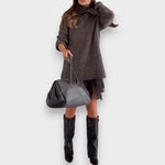 Αυτό το σετ συνδυάζει ασυνήθιστη ζεστασιά με εκλεπτυσμένη θηλυκότητα. Η απαλή, φαρδιά εφαρμογή εξασφαλίζει μέγιστη άνεση, ενώ το φόρεμα με την εκλεπτυσμένη υφασμάτινη δομή και τις διακριτικές λεπτομέρειες προσθέτει μια πινελιά κομψότητας. Μαζί, δημιουργούν μια εμφάνιση κομψή, μοντέρνα και ευέλικτη – ιδανική για καθημερινή χρήση, ραντεβού ή επαγγελματικές περιστάσεις.