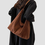 Αφεθείτε στην απόλυτη ανανέωση των αξεσουάρ με αυτήν την υπέροχη, γενναιόδωρη τσάντα hobo από σουέτ σε καφέ χρώμα . Το βαθύ, πλούσιο σοκολατί χρώμα και η απαλή, βελούδινη υφή του υλικού σηματοδοτούν άμεσα την πολυτέλεια και τη ζεστασιά, καθιστώντας την το τέλειο εποχιακό αξεσουάρ. Το χαρακτηριστικό oversized, φαρδύ σχήμα ημισελήνου είναι απίστευτα μοντέρνο και υπέροχα πρακτικό, εφαρμόζοντας άνετα στο σώμα σας, προσφέροντας παράλληλα άφθονο χώρο για όλα όσα χρειάζεστε. Το μονό, φαρδύ λουράκι ώμου είναι σχεδιασμένο για άνετη χρήση, επιτρέποντας σε αυτήν την τσάντα να εφαρμόζει αβίαστα και προσθέτοντας ένα στοιχείο χαλαρής κομψότητας σε κάθε ντύσιμο, από tailored παλτό μέχρι casual πλεκτά.